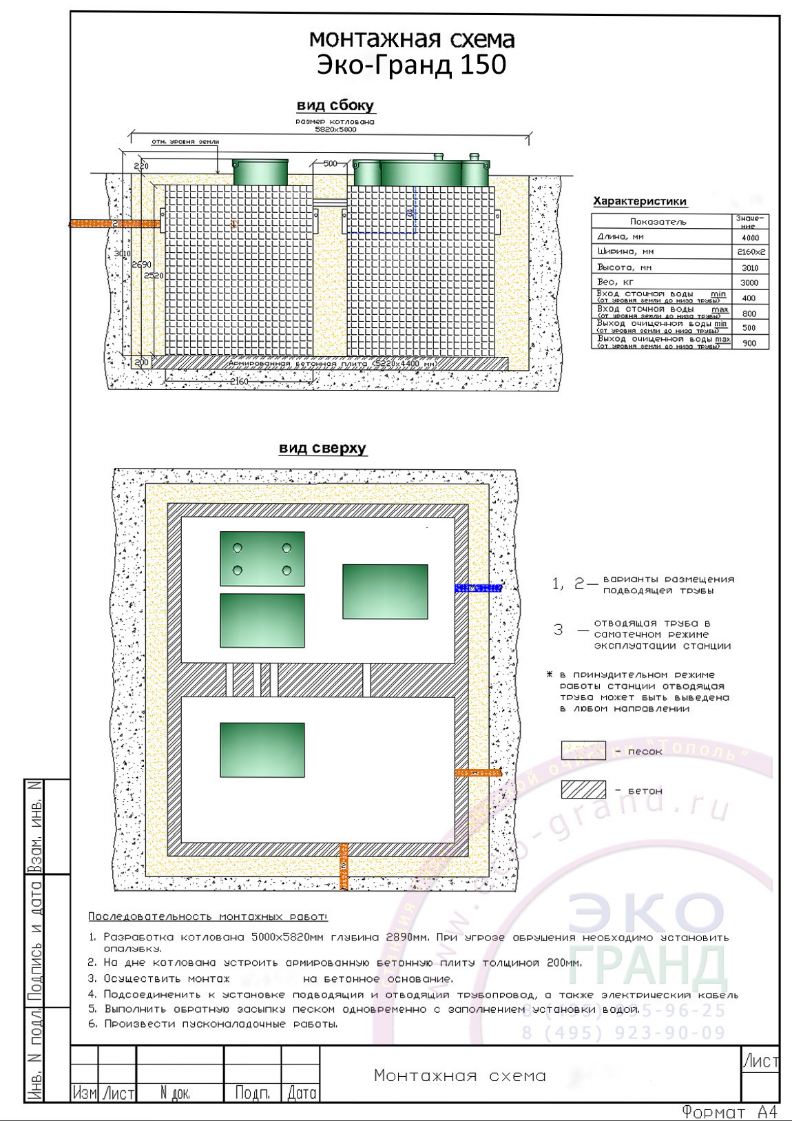 Стандартная комплектация поставки Станции Биологической Очистки "Эко-Гранд 150 Пр"