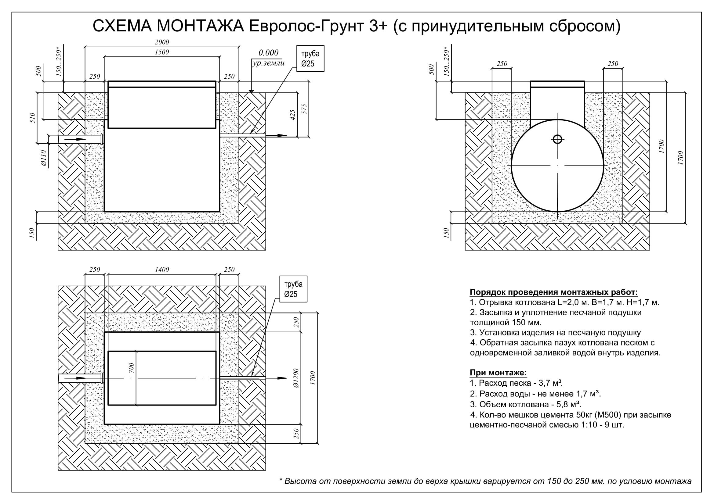 Цены на монтаж септика Евролос ГРУНТ 3+