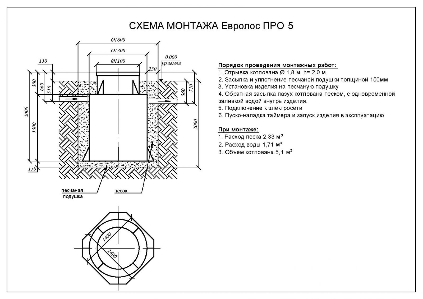 Цены на монтаж септика Евролос ПРО 5