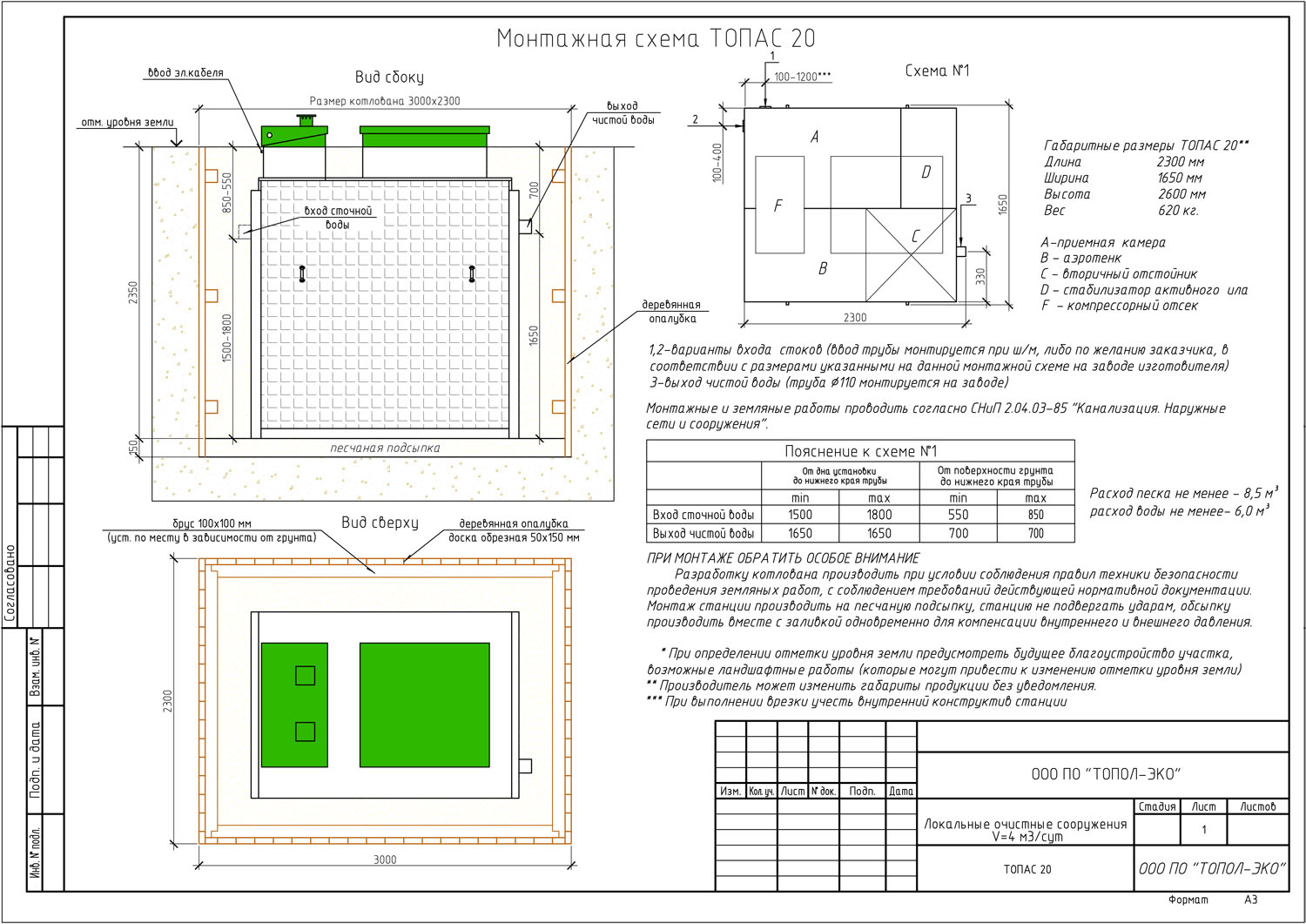 Технические характеристики септика Топас 20
