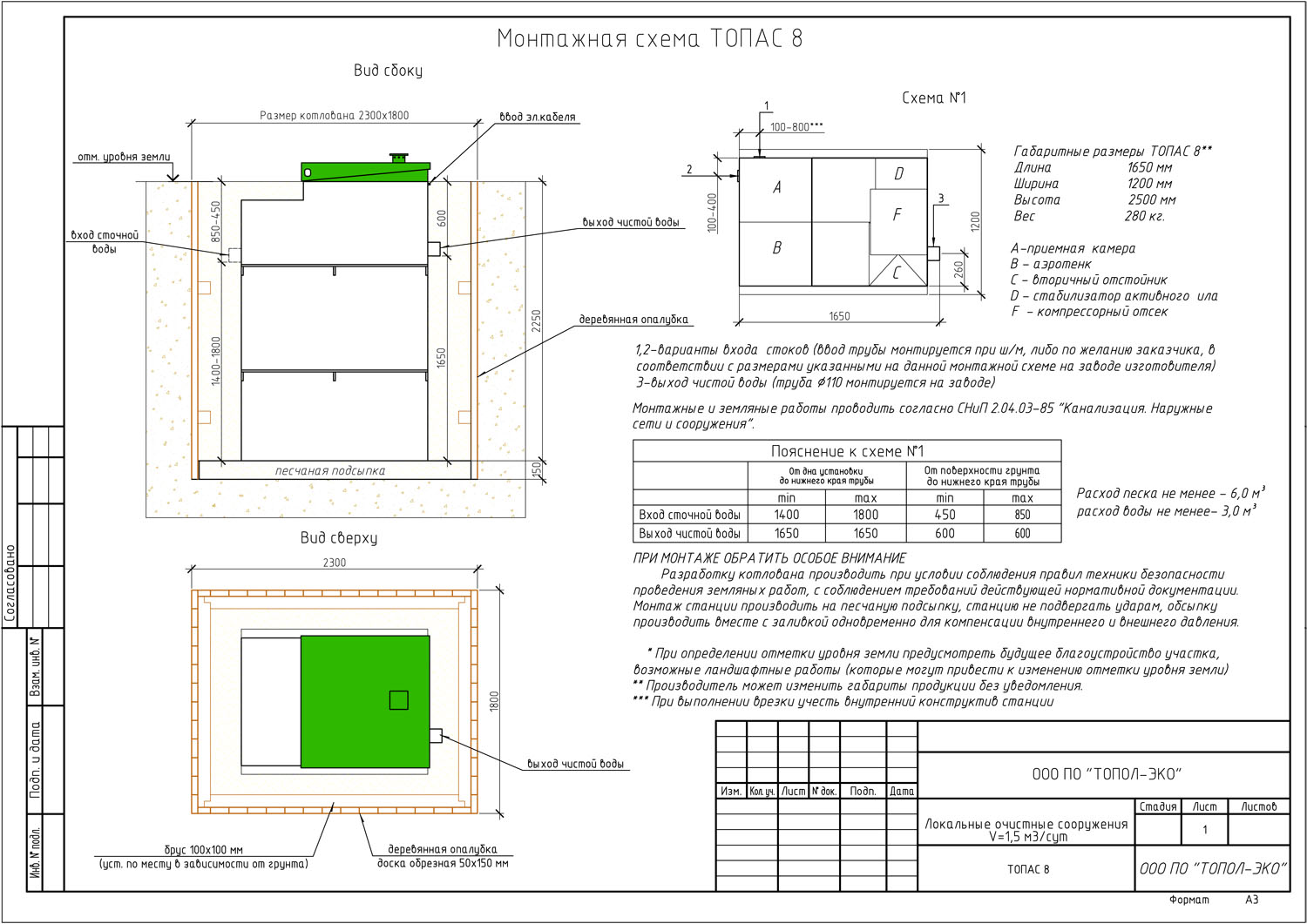Технические характеристики септика Топас 8
