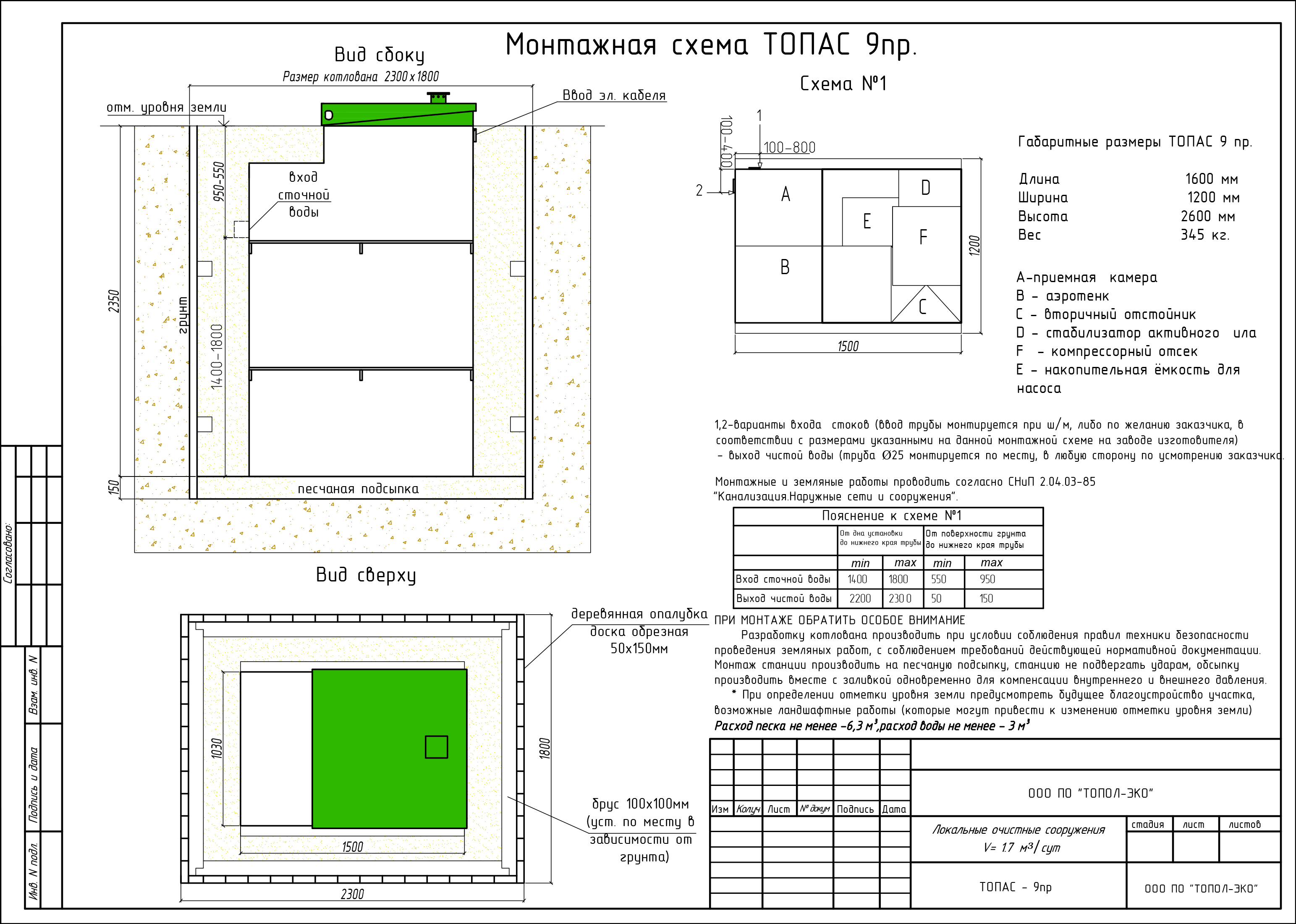 Топас 9 Пр – это септик со встроенным насосом, который обеспечивает принудительный отвод чистой воды в точку сброса. Этот процесс является полностью автоматическим, отвод воды осуществляется в канаву, дренажный элемент или колодец. Применение данной модели рекомендуется в регионах с уровнем грунтовых вод выше нормы и при условии, что глубина врезки канализационной трубы до 80 см.