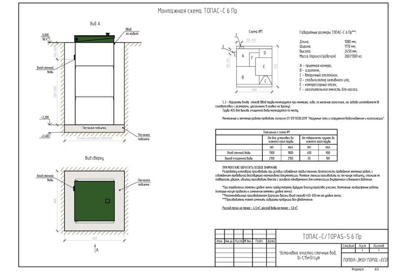 Топас-С 6 Пр – это септик со встроенным насосом, который обеспечивает принудительный отвод чистой воды в точку сброса. Этот процесс является полностью автоматическим, отвод воды осуществляется в канаву, дренажный элемент или колодец. Применение данной модели рекомендуется в регионах с уровнем грунтовых вод выше нормы и при условии, что глубина врезки канализационной трубы до 80 см.